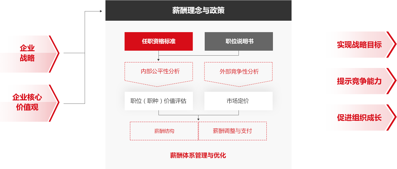 從發(fā)展戰(zhàn)略和核心價值觀出發(fā),設計和優(yōu)化激勵理念和機制: ◆ 針對不同發(fā)展階段員工設計激勵體系。 ◆ 注重非物質激勵體系設計和優(yōu)化。 ◆ 結合企業(yè)規(guī)模和成長階段、股東利益和經(jīng)營者利益、保健作用和激勵作用、市場薪酬水平和公司薪酬水平、崗位價值和崗位貢獻,設計具有成長性的高管激勵方案。